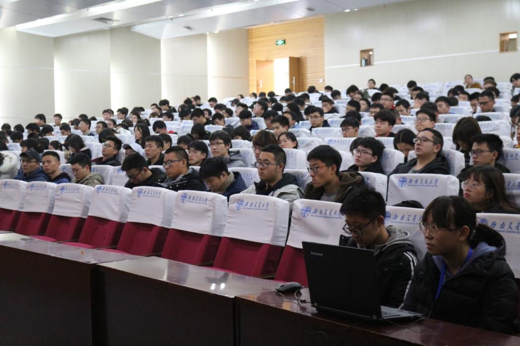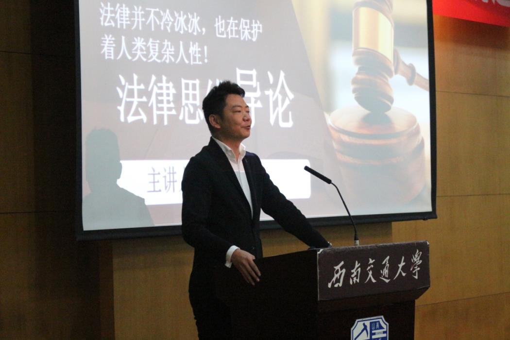 殷超表达了对傅尤刚重视学生法律教育的感谢,并介绍了自己创业的心路历程。殷超分析了当代大学生的生活现状,并对此提出了解决方案。殷超告诉同学们,“法律并不冷冰冰,也在保护着人类复杂人性”,由此展开论述法律思维的构建过程。最后殷超祝福同学们学业有成。