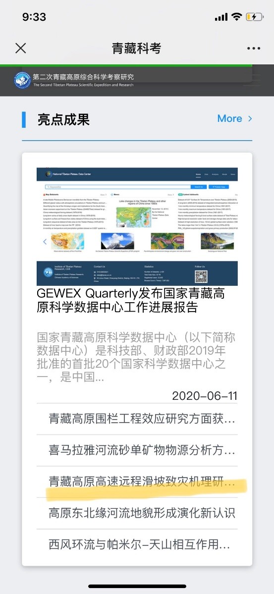 程谦恭教授团队林棋文博士生等发表在Journal of Geophysical Research:Solid Earth上的论文《Contributions of Rock Mass Structure to the Emplacement of Fragmenting Rockfalls and Rockslides: Insights From Laboratory Experiments》被遴选为第二次青藏高原综合科考研究亮点成果。