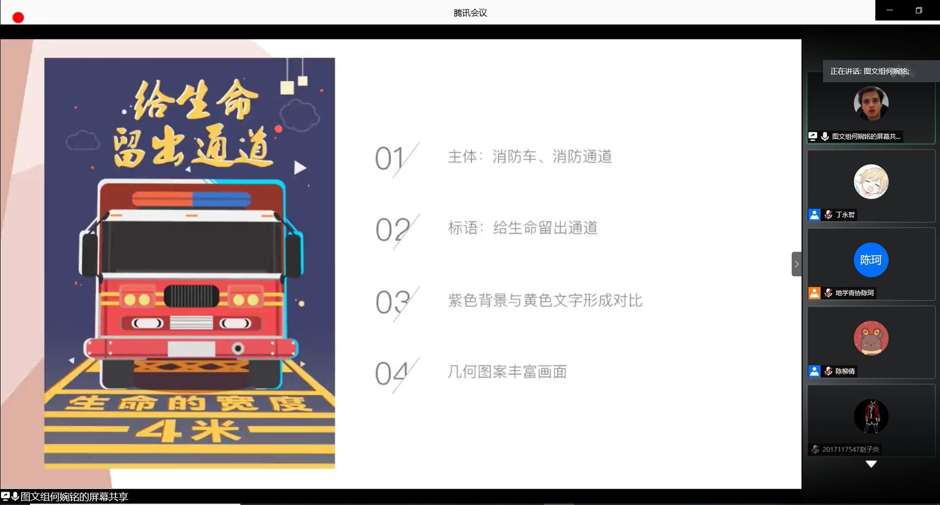 青年志愿者协会承办的“green&safety让你好好过”学生实践活动——消防安全宣传作品大赛于腾讯会议上举办决赛,并圆满落幕。