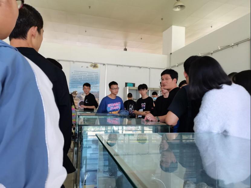参观完校史馆后,各带队老师带领大家参观地质陈列室,并向大家详细介绍馆中每一块岩石的特征、形成条件和工业用途。对于同学们提出的问题,各位老师更是有问必答,声情并茂地为同学们讲解,同学们也趁此机会解决自己对本专业的困惑并表达对于本专业的憧憬。赵晓彦表示开设《地质资源与地质工程概论》课程的目的是让同学们了解地质学科概况,培养同学们地质专业兴趣,夯实大家的专业知识基础,以避免开设专业课程时大家陷入迷茫和焦灼的状态。
