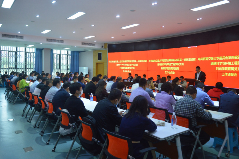 院长刘国祥主持会议。第一巡察组副组长金建明、孟廷会及巡察组成员,地球科学与环境工程学院、利兹学院党政领导班子全体成员、在校教职工、离退休人员代表和学生代表等出席动员会。