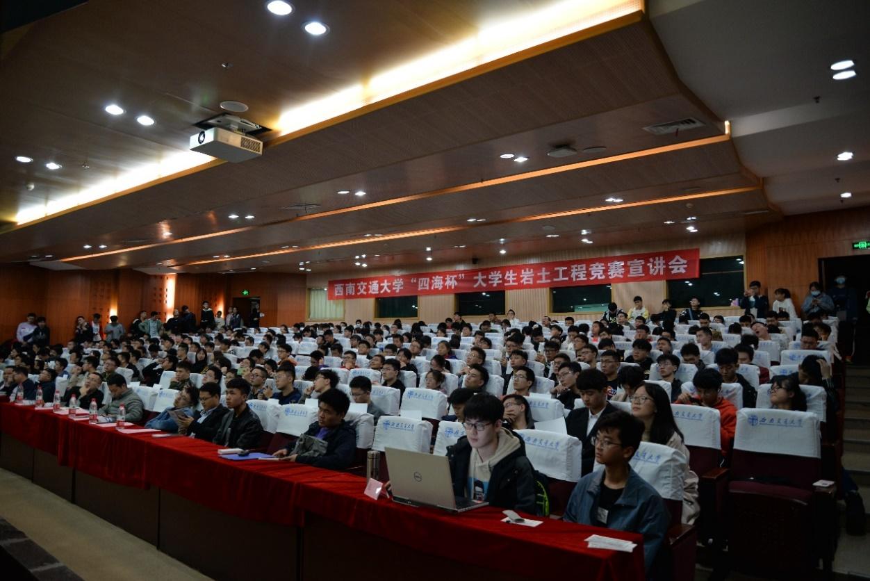 联合成都四海岩土工程有限公司于图书馆二号报告厅举办大学生岩土工程竞赛宣讲会。四海岩土工程有限公司副总工程师李明、人力资源总监徐艺、工程师陈挺、韩国漫画