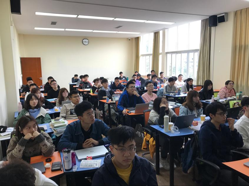 党委副书记傅尤刚,辅导员杨都强,2017级优秀学生代表何玮、贾舒婷主讲。