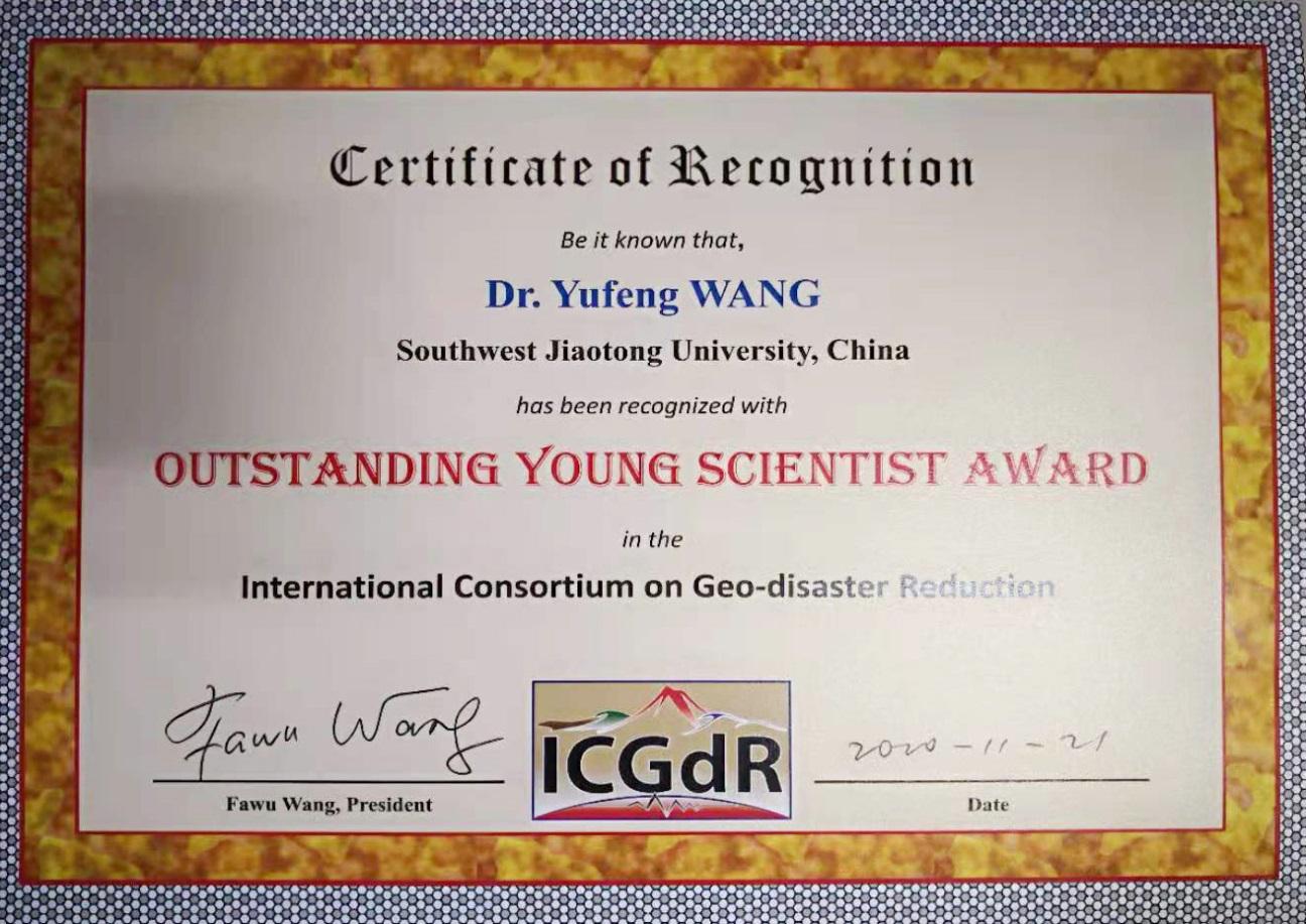 地质工程系王玉峰副研究员获奖证书
