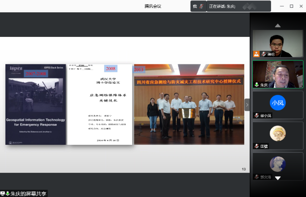 接着,朱庆老师提到虽然自己掌握了有关防灾减灾的关键技术,但面对如同2008年汶川地震时的情况,却仍然无法获取数据资料,由此表明了产学研相结合的重要性。朱庆老师讲述了自己曾参加四川省应急测绘与防灾减灾工程技术研究中心授牌仪式的经历,也从中体会到学问不分国界,合作交流对于科学研究起到举足轻重的作用。朱庆老师作为一名中共党员和教授,自觉担负起了科研带头人的责任,同时也成为了我们学习的榜样。