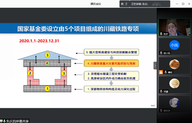 随后朱庆老师介绍了自己从2018年开始参与川藏铁路的规划建设,并提到测绘地理信息在川藏铁路建设中发挥着关键支撑和引擎作用。数字孪生是川藏铁路信息化的重要标志,也是建设智能川藏铁路的新途径,支撑物理空间和信息空间中孪生铁路全生命周期的精准映射与融合协同。朱庆老师表示自己还参与了川藏铁路重大灾害风险识别与预测的专项,并发表了数篇有关数字孪生川藏铁路的学术论文,从而积极发挥了测绘人在川藏铁路建设中起到的重要作用。
