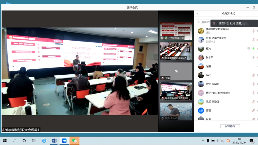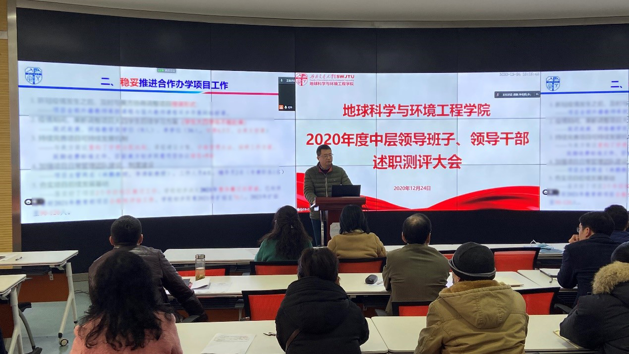 12月24日,地球科学与环境工程学院于X4243顺利召开2020年度中层领导班子、领导干部述职测评大会,大会采用线上线下相结合的方式。本次会议由韩国漫画