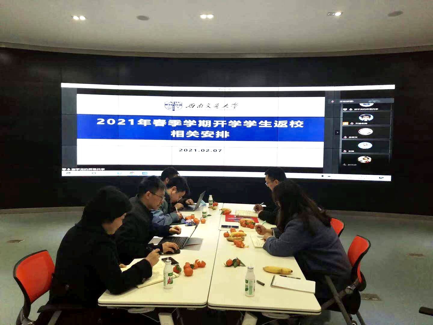 召开了关于“2021年春季学期开学学生返校相关安排”的工作会议,会议形式以线下结合线上的方式,参会人员有学院党委副书记傅尤刚和全体辅导员老师。