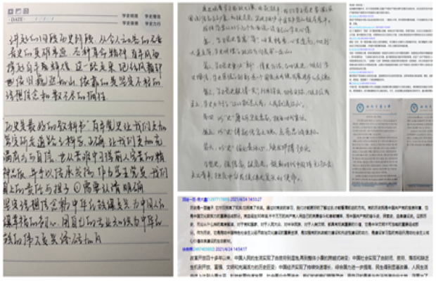 其余学生则由所在党支部、团支部组织自行线上观看。各支部在观看后积极组织学习讨论,畅谈学习感受。大家通过聊天软件交流自己的感想与思考,展开了激烈的讨论。从学习红船精神到坚定四个自信,从学习“两弹一星”精神到贯彻脱贫攻坚精神,所有学生都展现出无比的热情。大家表示作为新时期的先进青年,新时代的大学生,我们应该在生活中克勤克俭,严格要求;在学习上,以书山有路勤为径,学海无边苦作舟的精神,不断增加新的科学文化知识,不断提高自我政治理论修养,努力争取为早日实现中国梦而不懈奋斗。