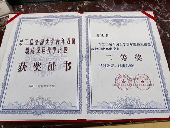 地质工程系两位青年教师在赵晓彦副院长的带领下,经过两天的激烈角逐,国内地质课程知名专家、教学名师组成的评委团现场打分评选,裴秋明老师荣获二等奖。参赛教师认真备赛,精心设计教学内容,展现了漫蛙漫画