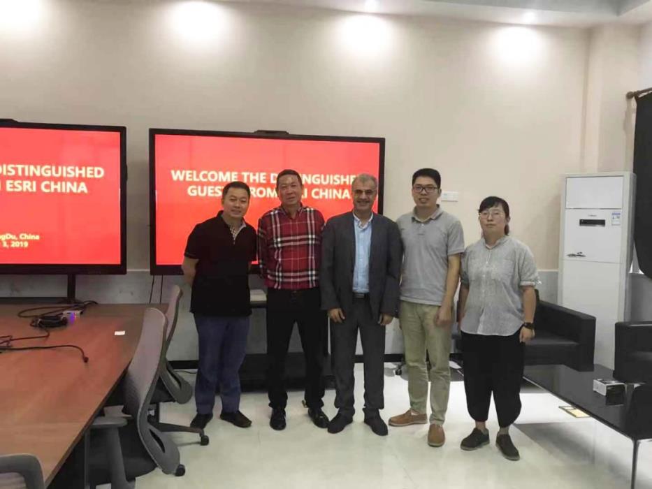 On September 3, 2019, Esri China visited the Faculty of Geosciences and Environmental Engineering (FGEE). The objective of this meeting was to establishGeoAI Smarter Map and LiDAR of ESRI-SWJTU Centre of Excellence. Prof. Lutz Pluemer, the Dean of the faculty, welcomed the visitors and provided with a brief introduction of internationalization and the importance of collaboration. Dr. Saeid (Adam) Pirasteh delivered a presentation on why should we collaborate together to establish a joint centre. Adam said, “We are living in a multilateralism world and we need to work together more than before with accurate geospatial information utilizing artificial intelligence (AI) for smarter map incorporation with LiDAR.” He also stressed on the need of working together for building a good environment and a better world for now and future generations. Dr. Dianrui Du, the Manager of ESRI China, emphasized the joint collaboration with a concrete roadmap working together to sign a memorandum of agreement soon. Both institutes hope that establishing of the GeoAI Smarter Map and LiDAR of ESRI-SWJTU Centre of Excellence will increase the efficiency of teaching, research and development, in particular, entrepreneurs and creating jobs in the field of GIScience and related disciplines beyond, to economic growth of China. Prof. Qing Zhu, the head of the VERLAB concluded the meeting and highlighted the next steps to be carried out to establish the joint centre.