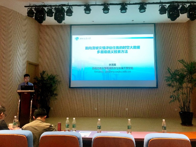 The 2018 graduate student Li Maosu submitted the paper “Multilevel Semantic Retrieval Method of Spatio-temporal Big Data for Landslide Disaster Loss Assessment”, which won the Outstanding Paper Award and made an oral report.
