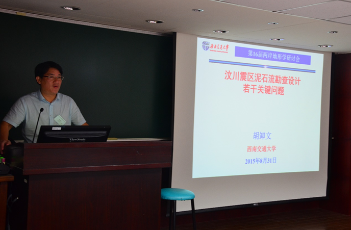 Prof. Hu has made an academic report entitled "Several key issues in debris flow exploration and design in the Wenchuan earthquake area", which is based on the characteristics and harmfulness of the major debris flow disaster since the 2008 5.12 mega-earthquakes in Wenchuan, Sichuan Province. Combined with the effect of controlling debris flow disaster in the earthquake, the report systematically summarized the methods of estimating the size of loose objects, the rationality of blocking coefficients and the corresponding flow rate, and the engineering design concepts in the process of debris flow exploration and design in the earthquake zone. The academic report was concerned by scholars from Taiwan University and Taiwan Normal University. Combined with the Lan Yangxi "Soudilleux" typhoon-induced large-type debris flow disaster in Yilan County, Taiwan (August 8, 2015), particularly, it was discussed extensively on how to scientifically design and effectively manage debris flow control project.