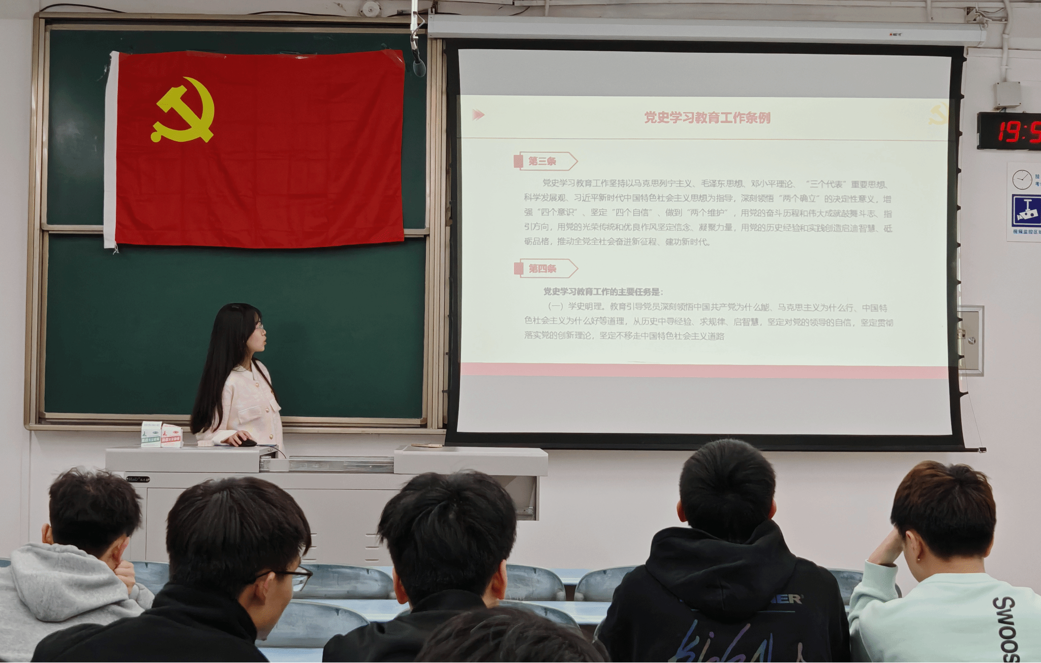 最后,党支部书记田博瑶同志带领大家深入领会《党史学习教育工作条例》。田博瑶同志强调了其对于党史教育工作的重要意义,希望全体党员能够深入学习党史知识、深刻领会其中的精神实质,坚定理想信念,从党的历史中汲取智慧和力量,做到学史明理、学史增信、学史崇德、学史力行,将其贯彻落实到党建工作的具体实践中。