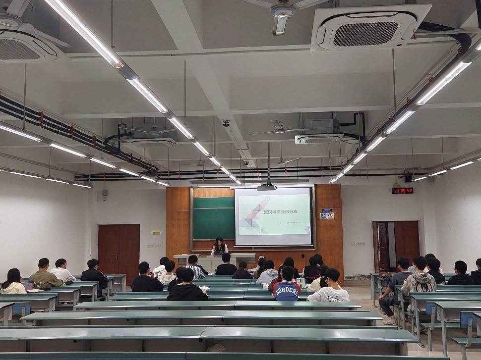 赠人玫瑰,手有余香,自身经验来之不易,分享他人更为可贵。多数小组选择开展经验分享,主题囊括了保研、考研、软件分享、英语竞赛、专业课学习等等。第十三组在经验分享前通过调查问卷、现场调研等方式,了解同学们需求,为经验分享做好充足准备,活动现场由多位主讲人以研之有理,研途有你为主题,从保研、考研、考公、实习就业等与大学生切实相关的方面展开分享,为学弟学妹解答疑惑,传授了自身经验,使大家有了更加明确的方向,对当下的就业形势也有了初步的了解。