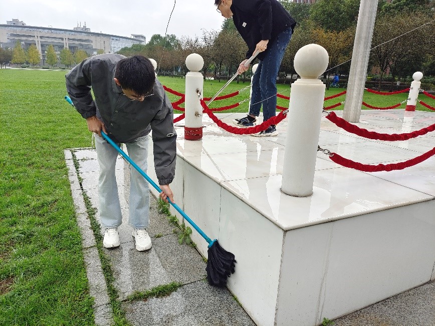 国旗神圣,无论经历多少风雨,依然鲜艳永不褪色,每日清晨在国旗班的护卫下,国旗升起,随风飘扬。而国旗台也需要我们共同爱护,因此对国旗台的维护必不可少,第小组对国旗台及其周边进行了擦洗,清理了污渍,让其焕然一新。