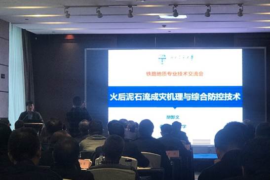 The Geological Technology Conference of Railway Engineering was held in Xi 'an. Professor Zhao Xiaoyan, Associate Dean of the Faculty of Geosciences and Environmental and dean of the Department of Geological Engineering, and other 4 teachers Including Professor Hu Xiewen, Professor Wu Xiyong, Dr. Chen Shikuo and Dr. Shen Yaping, attended the meeting on behalf of Southwest Jiaotong University. Professor Hu Xiewen made an invited speech entitled "Mechanism of debris flow disaster after fire and the comprehensive prevention and control technology" at the conference,which received high attention and recognition.