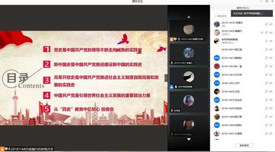 To further study and implement General Secretary Xi Jinping's important speeches and directives on the history of the party, the history of the People's Republic of China, the history of reform and opening up, and the history of Socialist Development (hereinafter referred to as the "Four Histories" ) , we will continue to deepen patriotic education in the new era.. Students of grade 18 Environmental Engineering, Fire Engineering and Safety Engineering participated in the "Four Histories" study on October 14. The study was conducted and lectured by teacher Yang Duqiang, instructor of grade 18, using Tencent Conference as the platform.