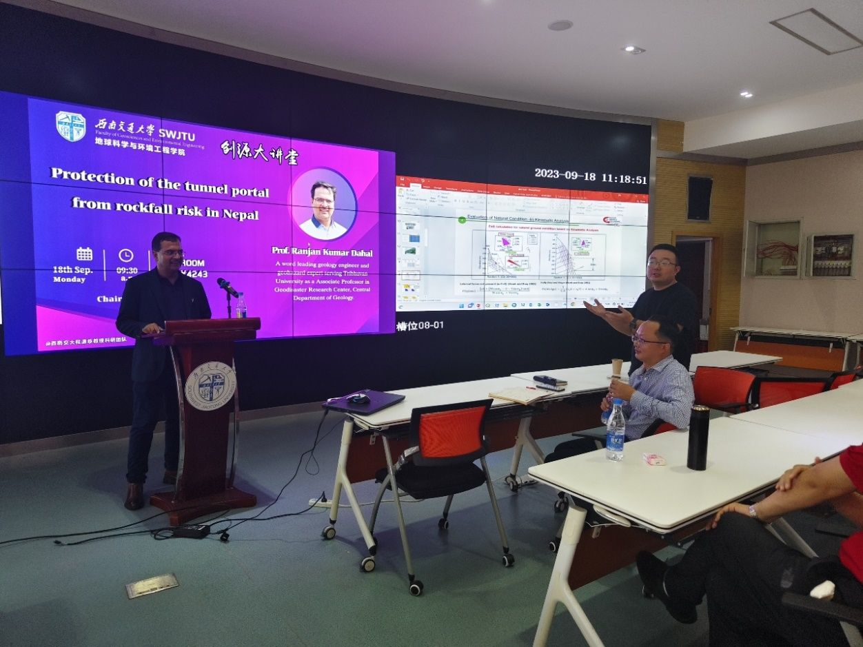 程谦恭教授团队特邀尼泊尔特里布文大学Ranjan Kumar Dahal教授于2023年9月18日上午在犀浦校区X4243会议室开展学术报告。Ranjan教授是尼泊尔地质工程和地质灾害领域著名专家,过去20年来一直从事地震、滑坡和泥石流等地质灾害的研究工作。