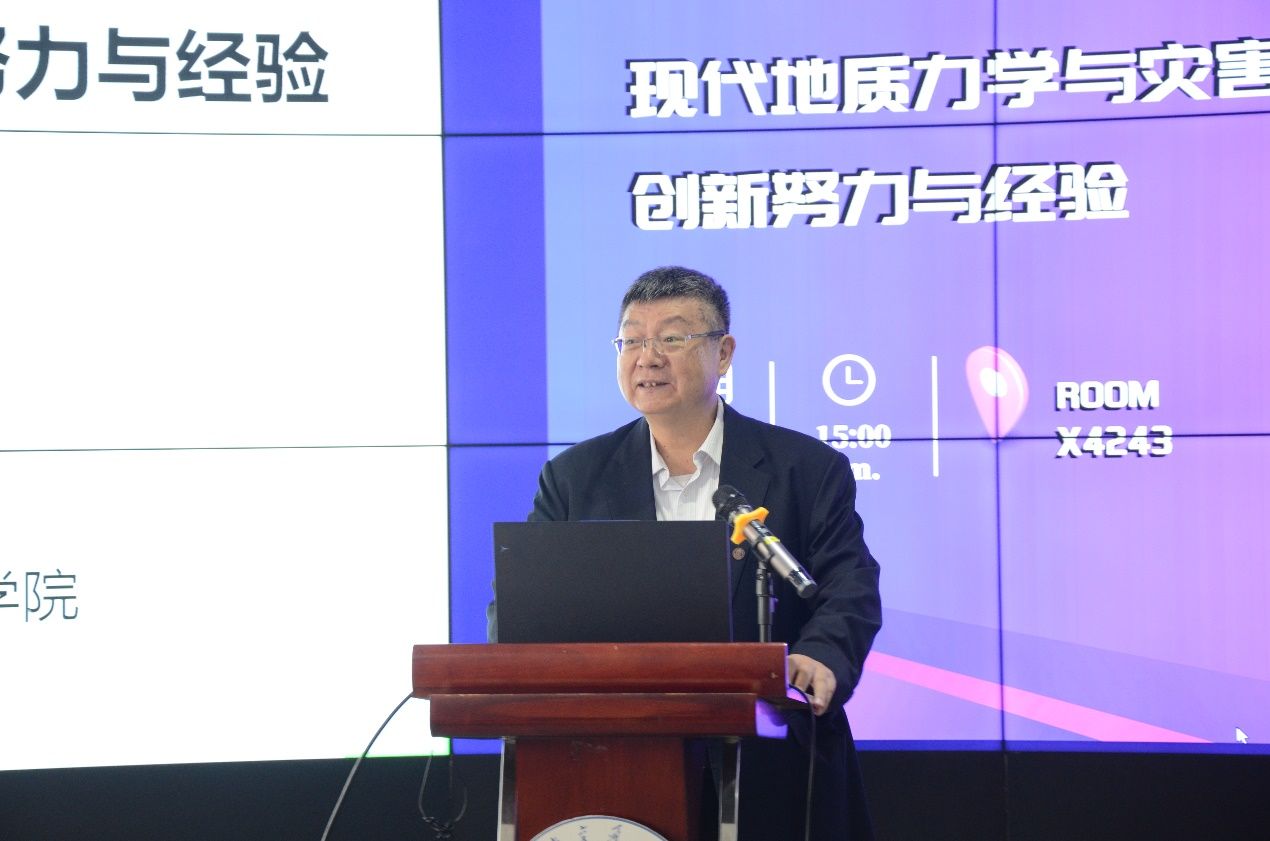 此次报告是2023年“创源大讲堂”系列报告之一,报告主题为“现代地质力学与灾害防治的创新努力与经验”。报告由王玉峰特聘研究员主持,60余名师生参加报告。