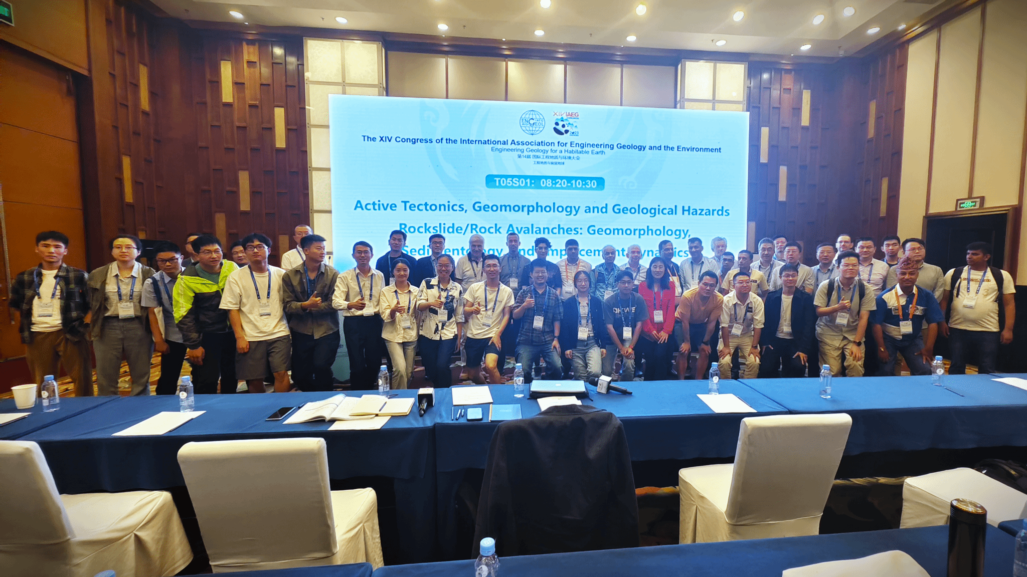 程谦恭教授团队主持召开的“高速远程滑坡”主题分会顺利举办,团队特邀高速远程滑坡相关领域国际著名学者Bruno Cagnoli、Shiva P. Pudasaini、Stuart Dunning、Ranjan Kumar Dahal等人参会并作分会场主持人及(或)特邀学术报告。大会上半场由Stuart Dunning、王玉峰主持,下半场由Bruno Cagnoli、Shiva P. Pudasaini主持,现场前后共计近百人参会。