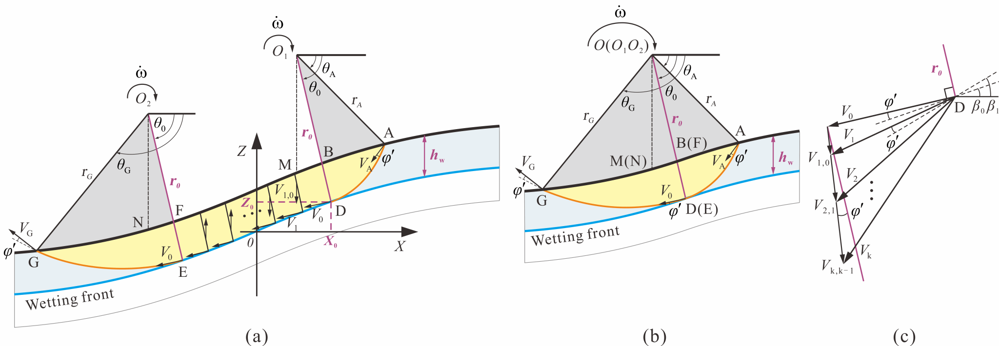 程谦恭科研团队成员张龙飞讲师与英国杜伦大学Wangcheng Zhang助理教授等针对降雨入渗下的曲线型斜坡提出了一种新颖的渐进失稳机制,并制定了其降雨阈值、滑面深度与失稳扩展范围的上下限判定准则,该准则适用于粗粒土在短时强降雨或者雨季连续降水的情况。通过与有限元极限分析的结果进行比较,论证了所提准则的准确性。结合斜坡的几何特征与残坡积土的水力特性,所提准则可用于自然斜坡中降雨滑坡的快速评估。得出的主要结论如下:
