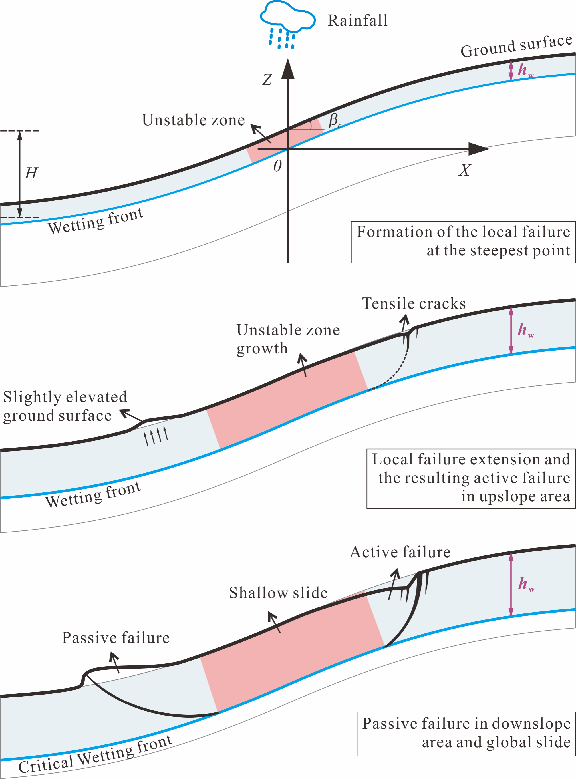 图1. 浅层降雨滑坡的渐进破坏过程