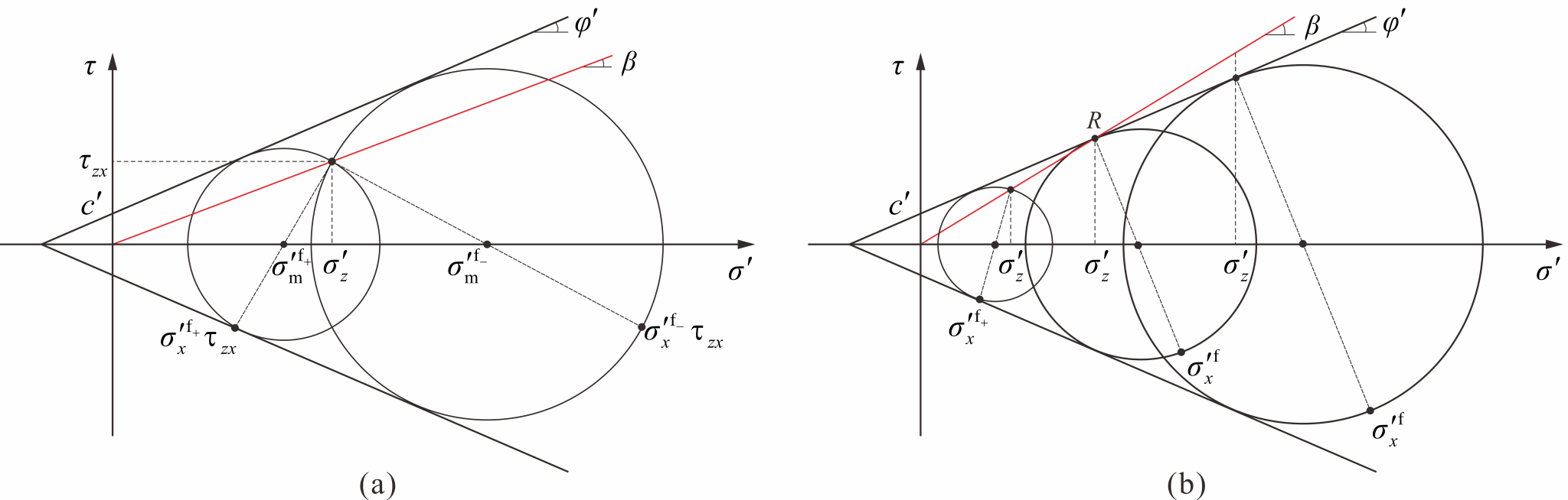 图4. 滑体主/被动破坏的应力莫尔圆