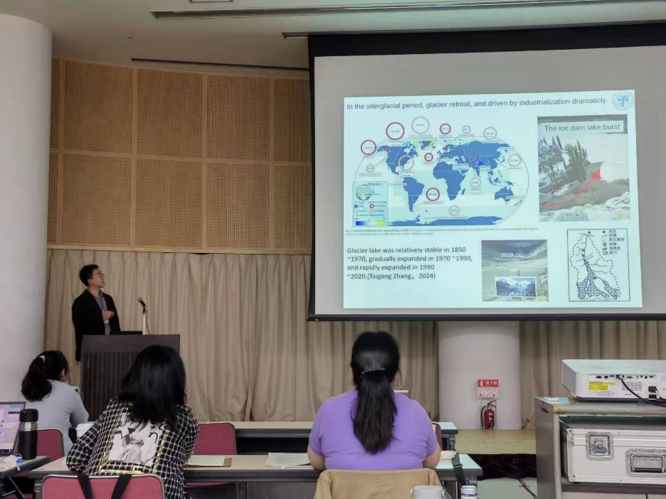博士研究生吕毓东作了题为《Statistics and comparison of ancient and modern glaciers in Gongga Mountain area, Hengduan Mountains, Sichuan, China》(横断山脉贡嘎山地区古冰川与现代冰川统计与比较研究)的专题报告。他的研究首次系统对比了贡嘎山地区古代冰川和现代冰川的分布、面积及地貌特征,指出现代冰川面积仅为晚更新世冰川的约37%,并强调了贡嘎山地理位置对冰川演化的独特限制。